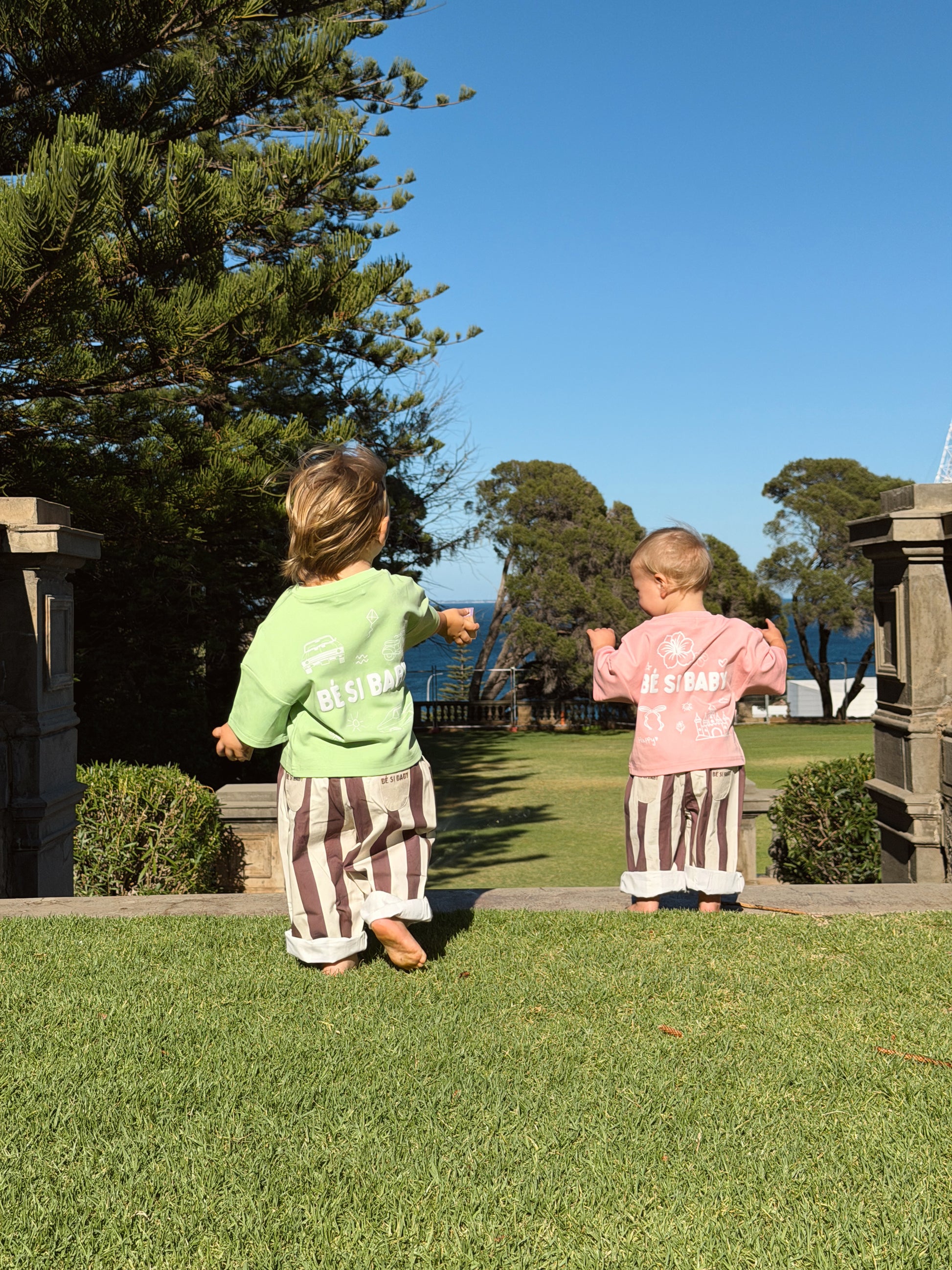 Our Choco Stripe Pants are designed for comfort, movement and everyday wear. Made from 100% cotton, the soft striped fabric is breathable and gentle on little skin. Featuring a comfy elastic waistband with adjustable drawstring, these pants are easy to pull on and stay put through play, naps and everything in between.